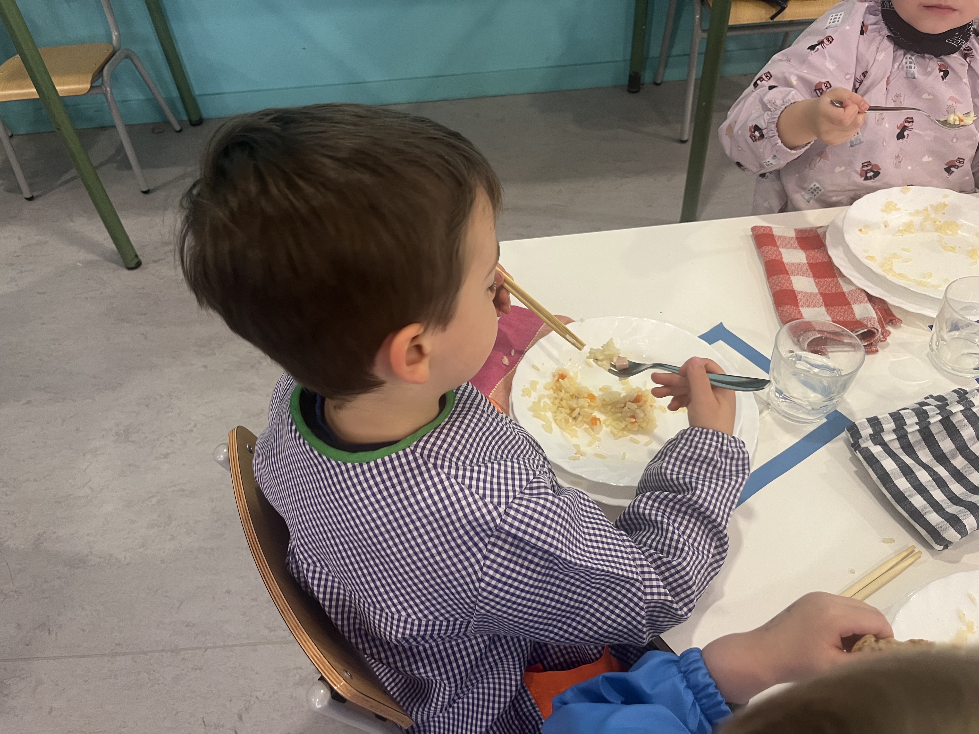 Atzoko egunean ikastetxean bazkari txinatarra izan genuen, ikasleak oso gustora egon ziren txinatar makilatxoekin janari berria dastatzen.